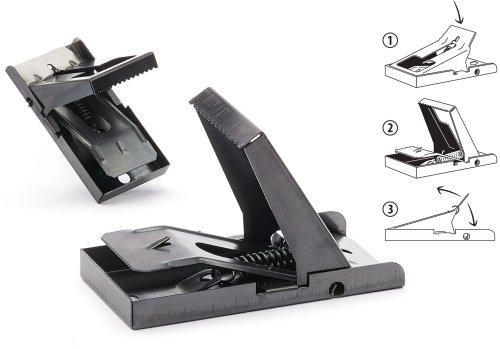 Открывающаяся металлическая мышеловка. На спусковой крючок помещается подходящая приманка, взводится прижим, удерживатель следует положить на прижим, сам удерживатель вставить в спусковой крючок. В качестве приманки можно использовать сыр, колбасу, солонину, орешки, сладко пахнущие продукты. Мышеловку помещают в места замеченной активности грызунов, вне досягаемости детей и домашних животных.